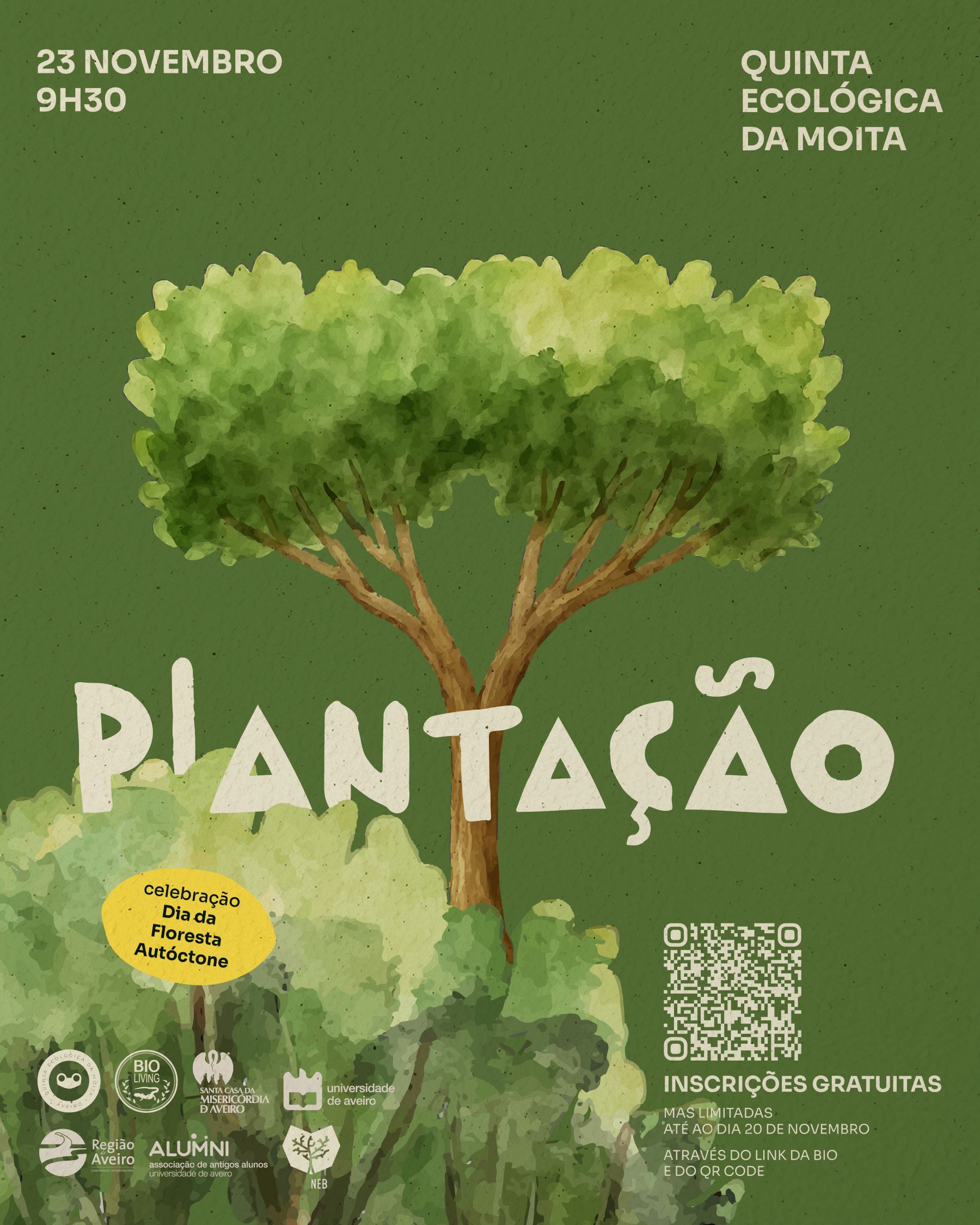 Dia 23 de novembro, vem celebrar o Dia da Floresta Autóctone com a plantação de árvores e arbustos autóctones na Quinta Ecológica da Moita, em Oliveirinha, Aveiro.
