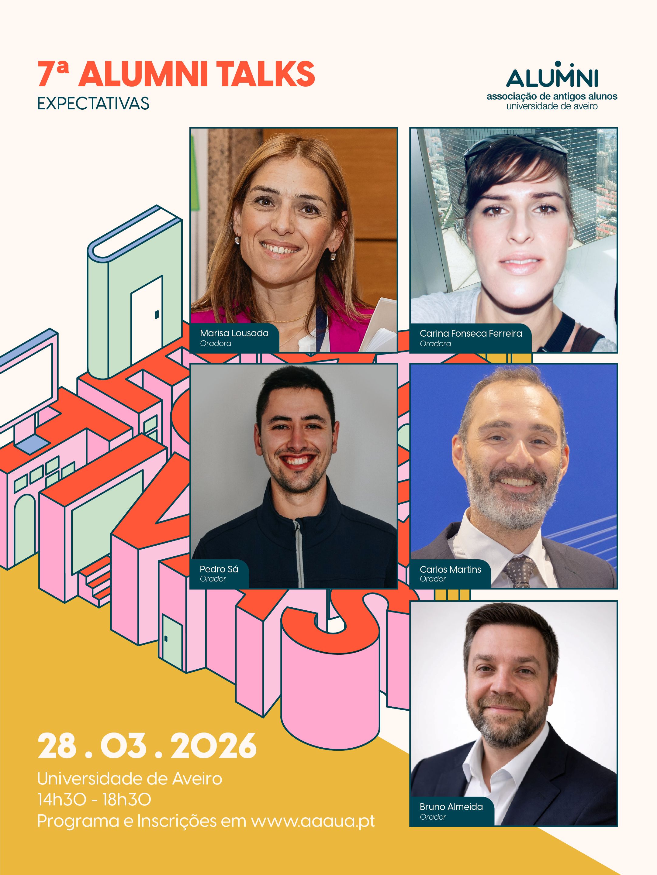 Inscrições em https://www.aaaua.pt/inscricao/4a_alumni_talk |